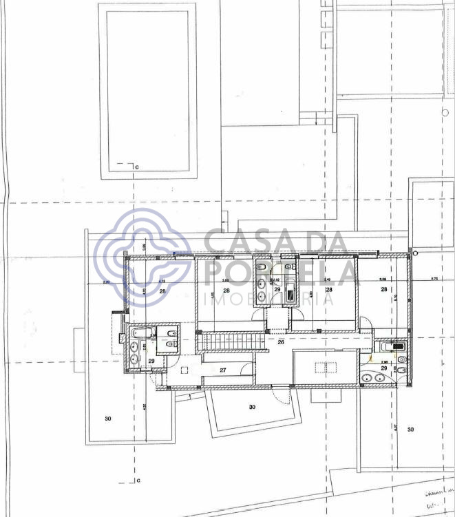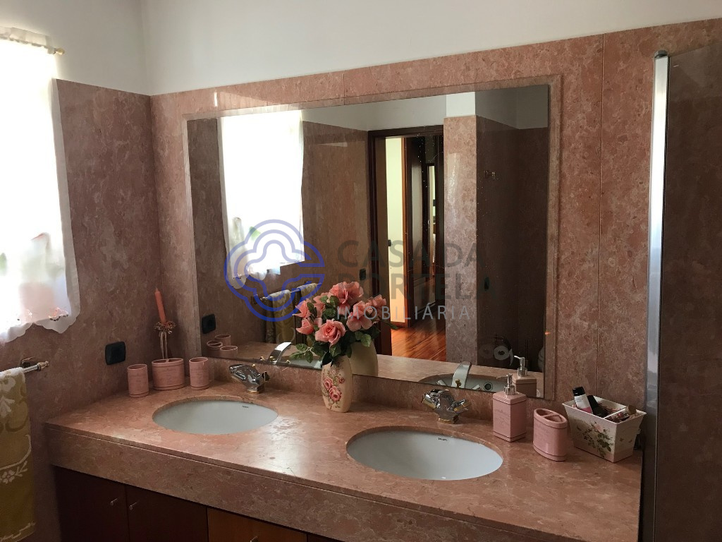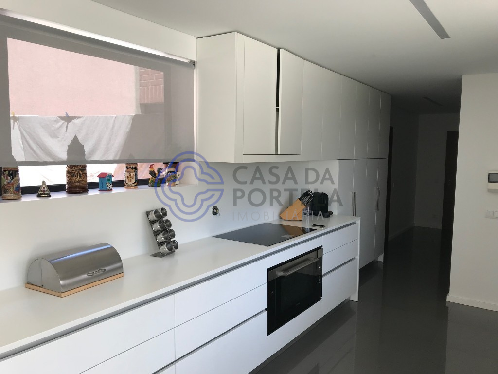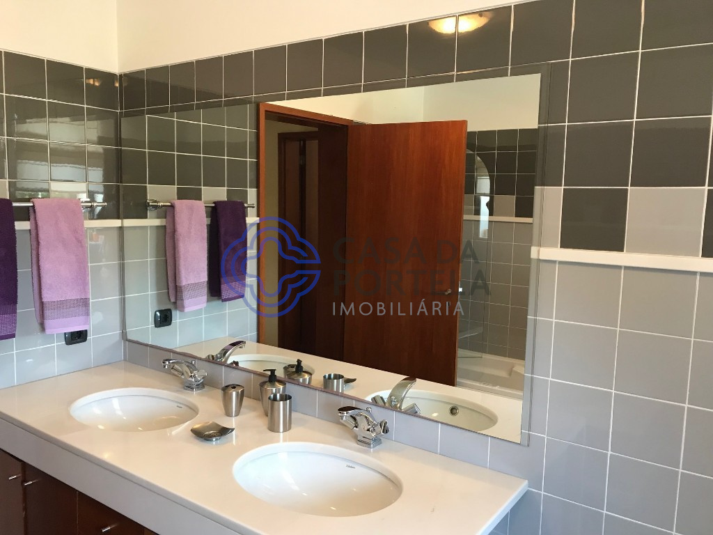 Un lavabo en appui (3,5 m2) est également accessible via le hall principal. La cuisine, avec un espace réservé pour les repas, a un accès direct au garage (51.6m2) avec un accès direct au jardin et avec un patio de service qui donne également accès à l’espace pour le traitement des vêtements (19m2) et salle des machines / arrumos (7m2).