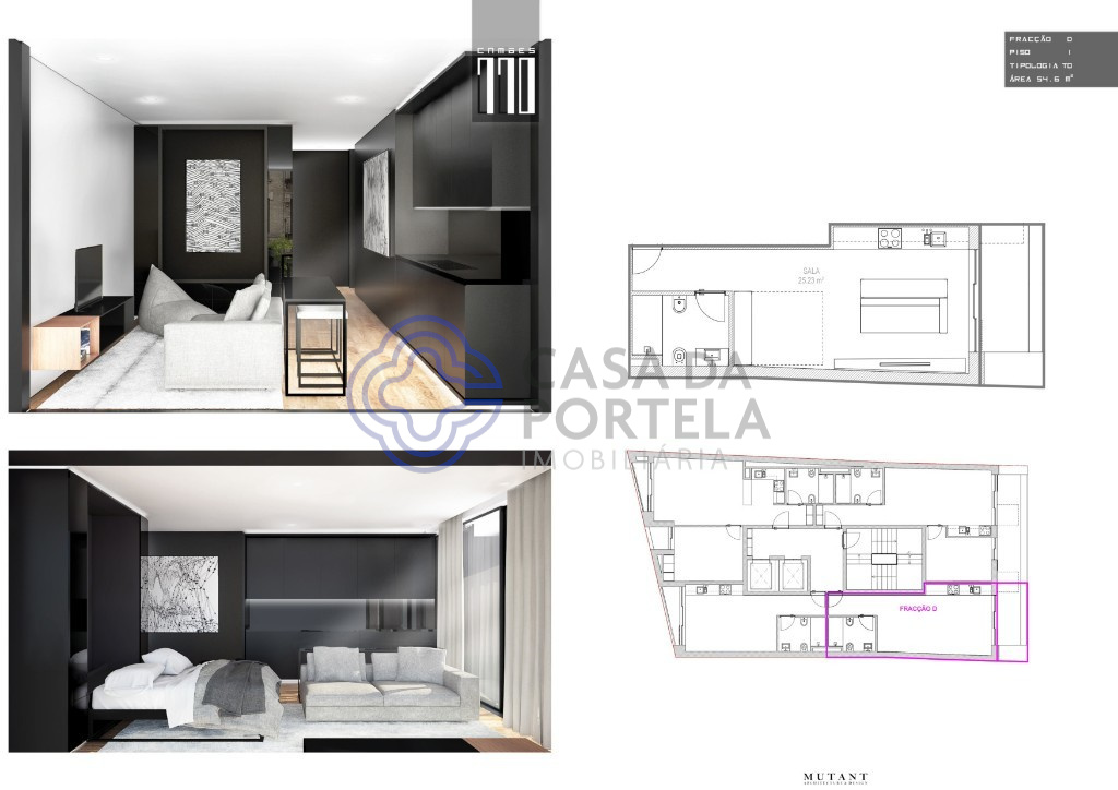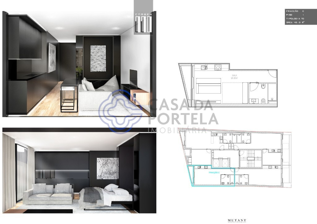 Moderno apartamento T0, para venda, inserido em prédio em construção.